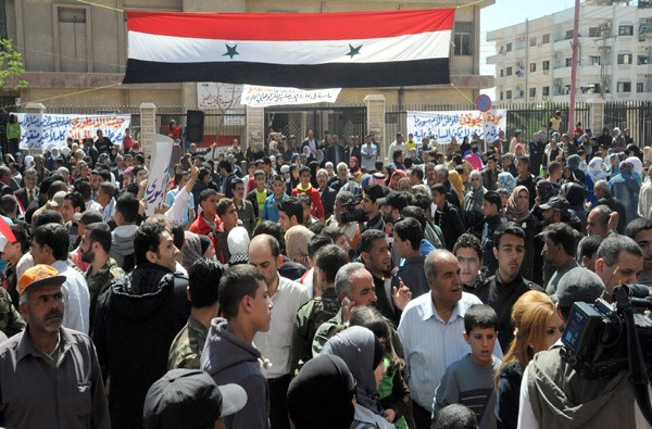 Popular and civil figures, students and youths took part in the rally, stressing their rejection of any foreign interference in the Syrian internal affairs.