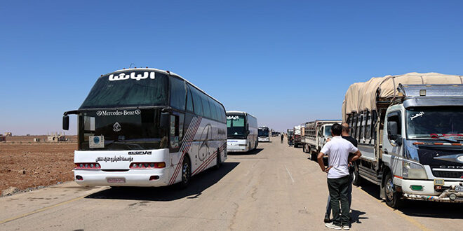 10 buses, accompanied by Syrian Arab Red Crescent vehicles, headed to Sweida through Busra al-Sham humanitarian corridor to evacuate a number of civilians from the governorate.