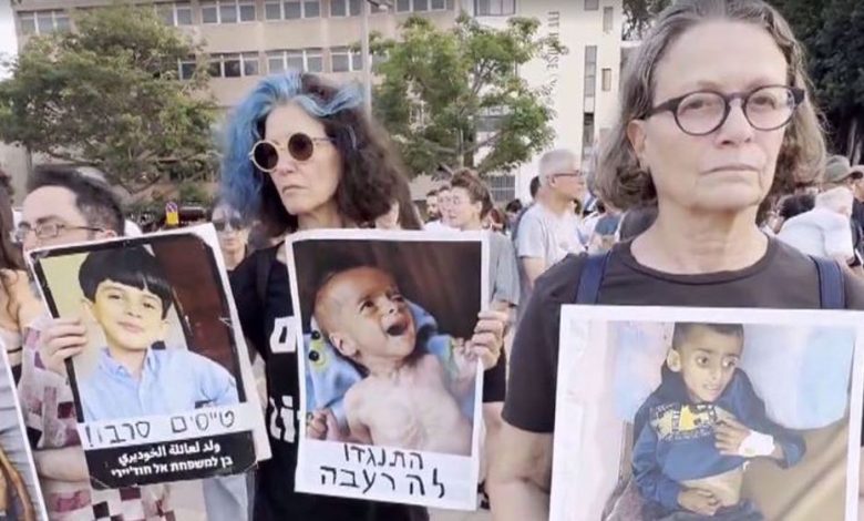 Thousands have staged a protest in Tel Aviv against Israel’s genocidal war on the Gaza Strip, carrying photos of starving Palestinian children.