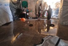 Rainwater inundated multiple displacement camps in the Gaza Strip as the region…