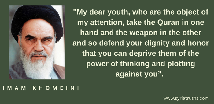 “My dear youth, who are the object of my attention, take the Quran in one hand and the weapon in the other and so defend your dignity and honor that you can deprive them of the power of thinking and plotting against you”.
