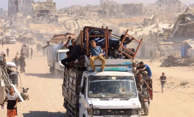 Local media reported on Tuesday that some of those forced to leave Gaza City traveled on trucks and tractor-pulled trailers piled high with people and household belongings.