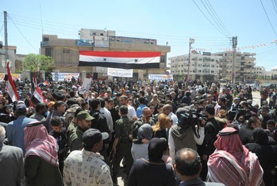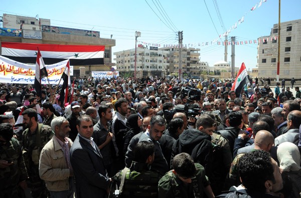Popular and civil figures, students and youths took part in the rally, stressing their rejection of any foreign interference in the Syrian internal affairs.