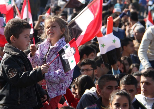 Waving Syrian flags and holding posters of Syrian President Bashar Assad, the participants expressed hope for imminent victory of the national army against foreign-backed militants.