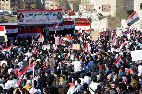 Thousands of Syrians have poured to the streets in different cities of the country to voice support for their government and national army.
