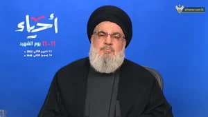 Addressing Hezbollah ceremony marking Martyr’s Day, Sayyed Nasrallah responded to the remarks made the US Assistant Secretary of State for Near Asis Affairs, Barbara Leaf, who had described Hezbollah as Lebanon’s curse.