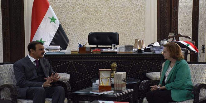 Damascus, SANA- Minister of Culture, Dr. Lubanah Mshaweh has discussed with Ambassador of the Islamic Republic of Pakistan to Syria, Shahid Akhtar, the promotion of cooperation in all cultural fields.