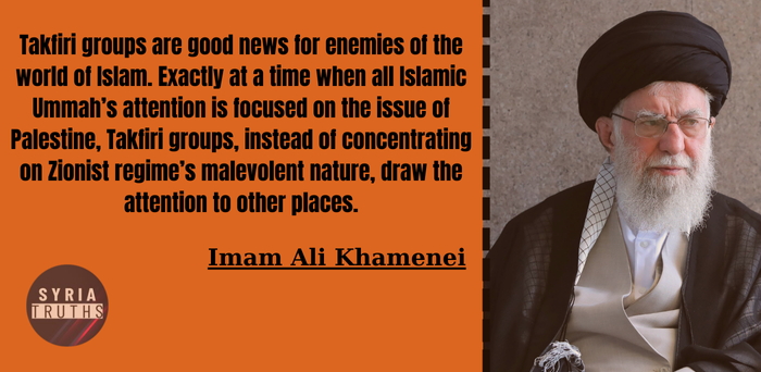 Takfiri groups are good news for enemies of the world of Islam. Exactly at a time when all Islamic Ummah’s attention is focused on the issue of Palestine, Takfiri groups, instead of concentrating on Zionist regime’s malevolent nature, draw the attention to other places.
