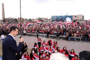 Huge masses of Syrians marched in the main squares of various Syrian cities to express support for the reform program of president Bashar al-Assad and reject foreign intervention in Syria’s internal affairs.